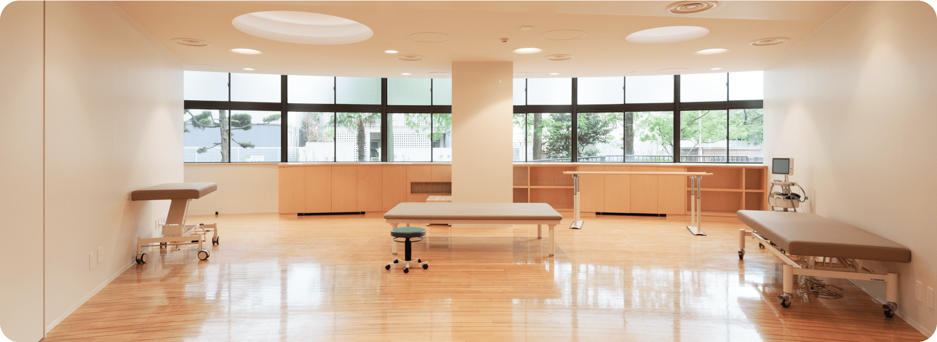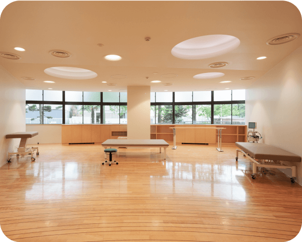 当センターには、明るく広々とした専用のリハビリルームを併設しています。